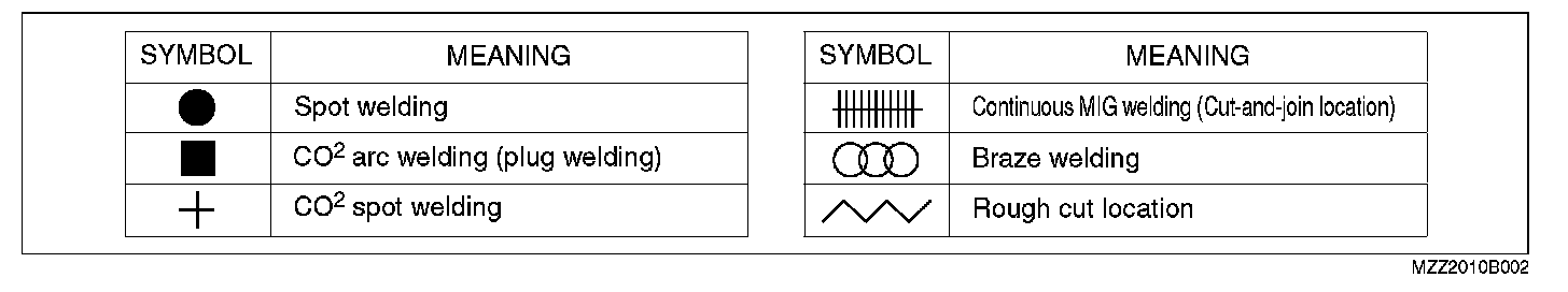 The given 6 symbols are used to indicate the type of weld that is used when replacing body panels.
