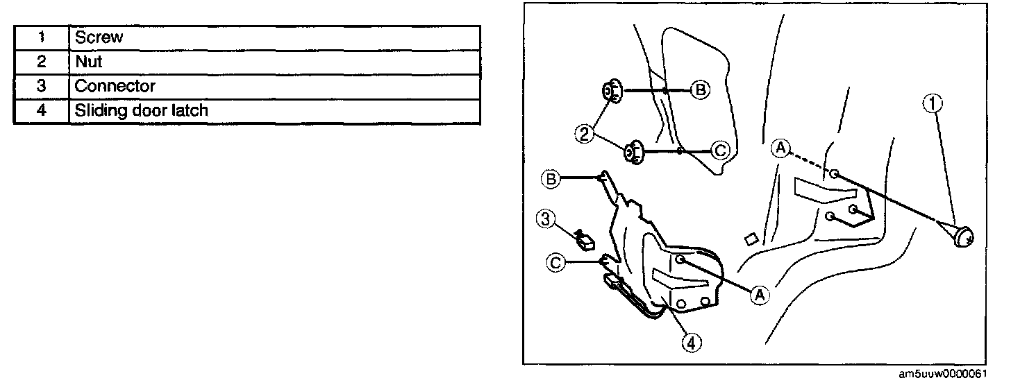 SLIDING DOOR LATCH REMOVAL/INSTALLATION1. Remove the battery cover.