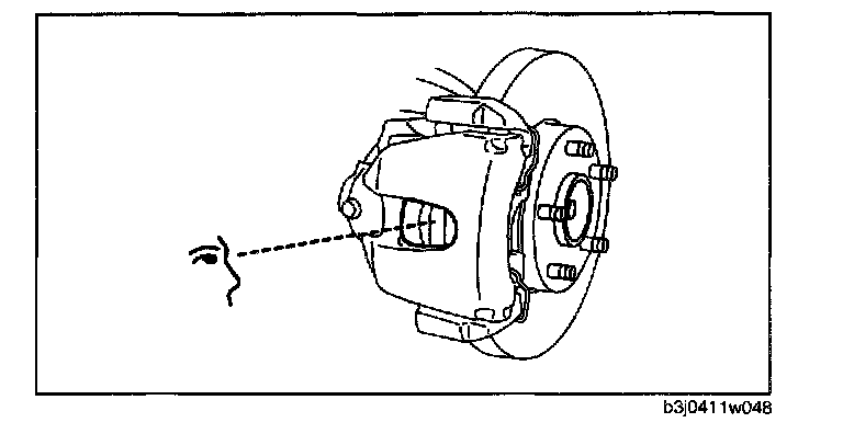 Disc Pad Thickness Inspection1. Jack up the front of the vehicle and support it with safety stands.