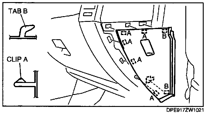 1. Pull the side panel outward and detach clips A.