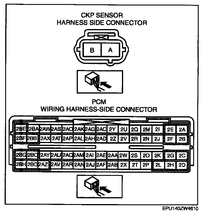 - CKP sensor terminal B and PCM terminal 2Z