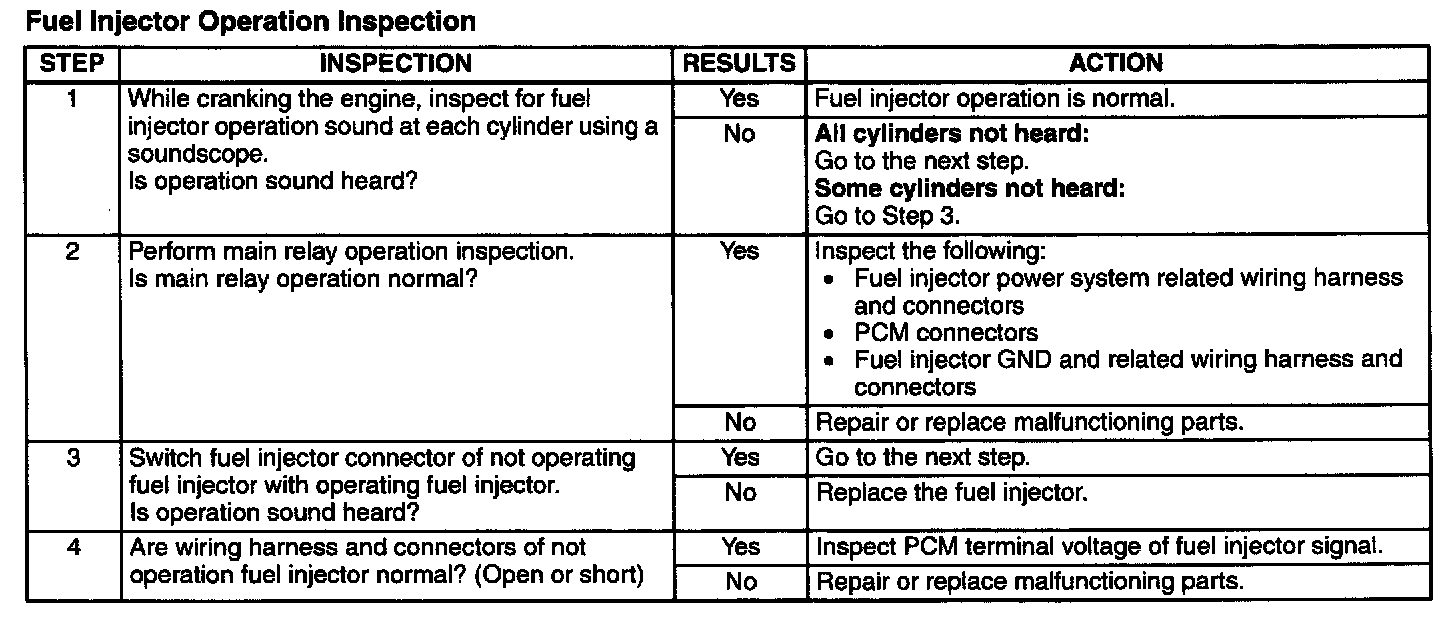 1. Crank the engine and verify that fuel pump relay operation sound is heard.