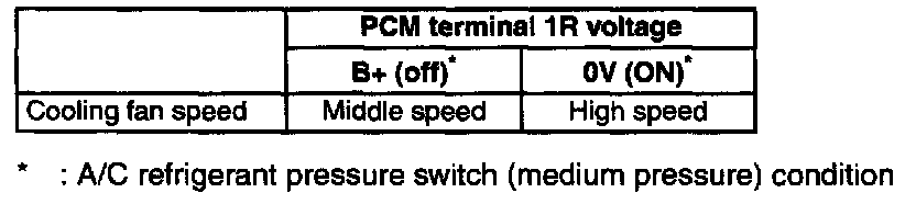 7. Verify that the cooling fan operates with following table.