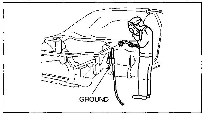 Precautions Before WeldingA vehicle has various electrical parts. To protect the parts from excessive current generated when welding, be sure to perform the following procedure.