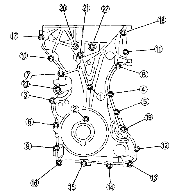 Install the engine front cover bolts in the order shown in the figure