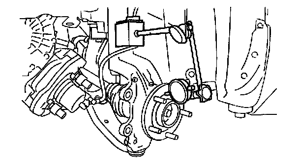 1. Install the magnetic base and dial gauge as shown in the figure and measure the wheel bearing axial excessive play.