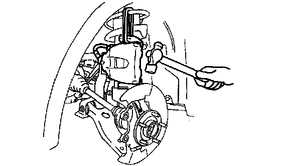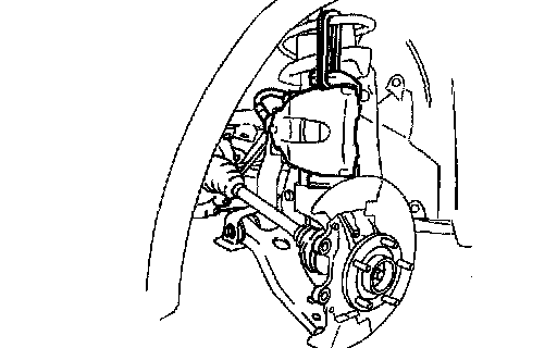 1. Remove the brake caliper component from the steering knuckle and suspend it out of the way using a cable.