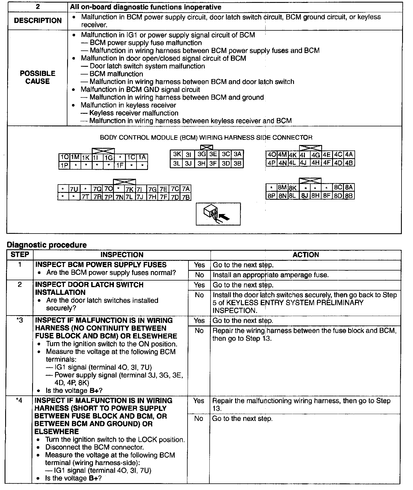 No.2 ALL ON-BOARD DIAGNOSTIC FUNCTIONS INOPERATIVEStep 1-Step 4: