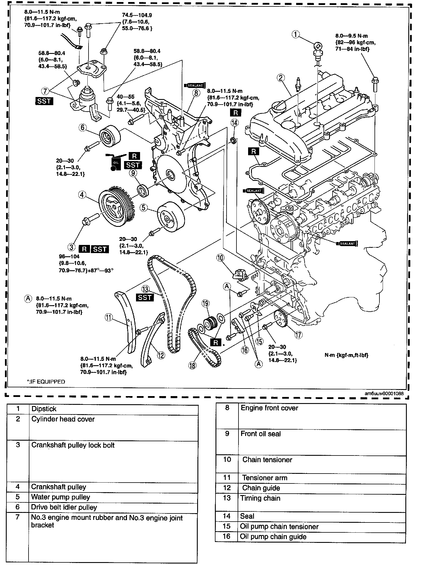 - Install the engine front cover within 10 min of applying the silicone sealant.