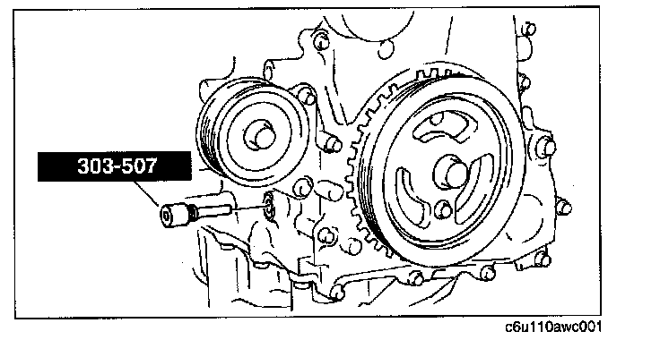 1. Temporarily install the crankshaft pulley and crankshaft pulley lock bolt to the crankshaft, and lock the oil pump against rotation as shown in figure.