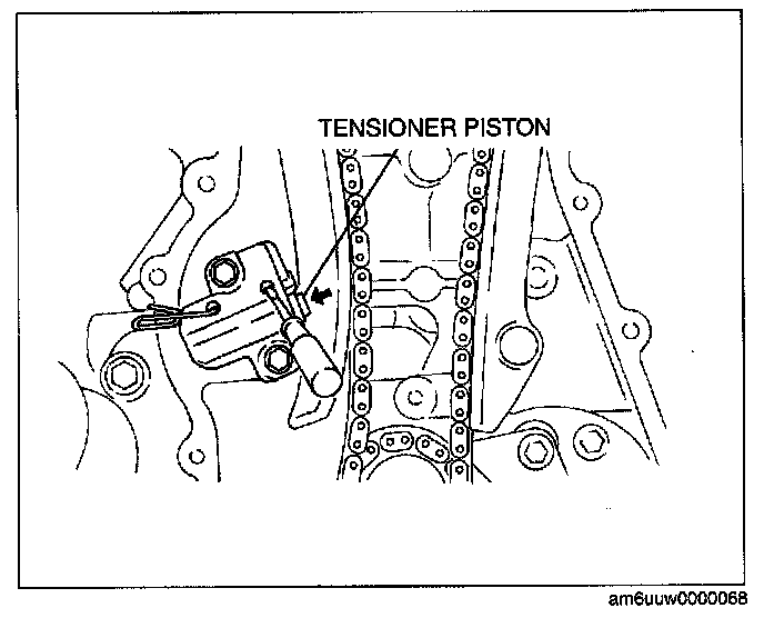 3. Hold the tensioner piston using a 1.5 mm (0.059 in) wire or paper clip.