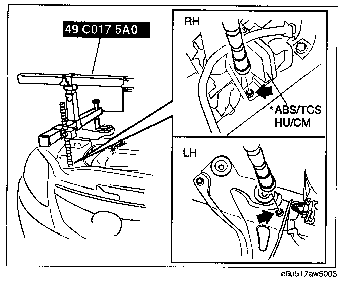 (1) Install the right rear shaft of the SST to the bolt of the right shock absorber as shown in the figure.