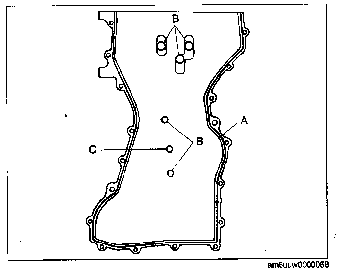 1. Apply silicone sealant to the engine front cover as shown in the figure.