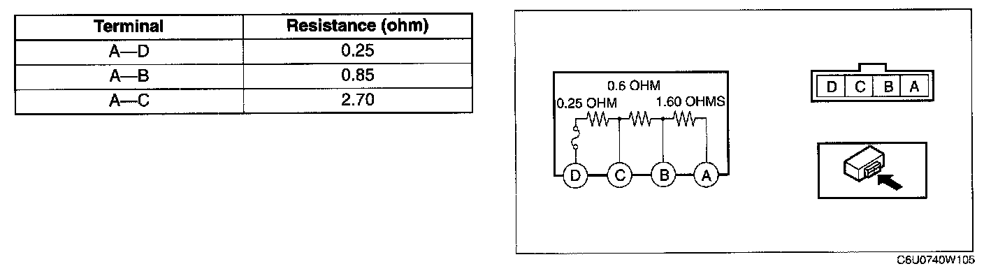 Verify that the resistance between the terminals of the resistor is as shown in the table.