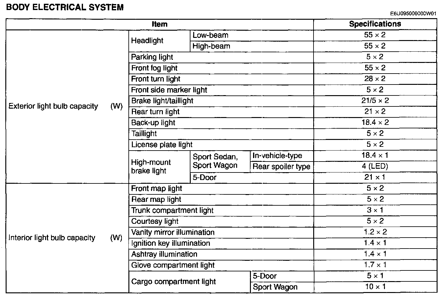 Lighting and Horns: Specifications