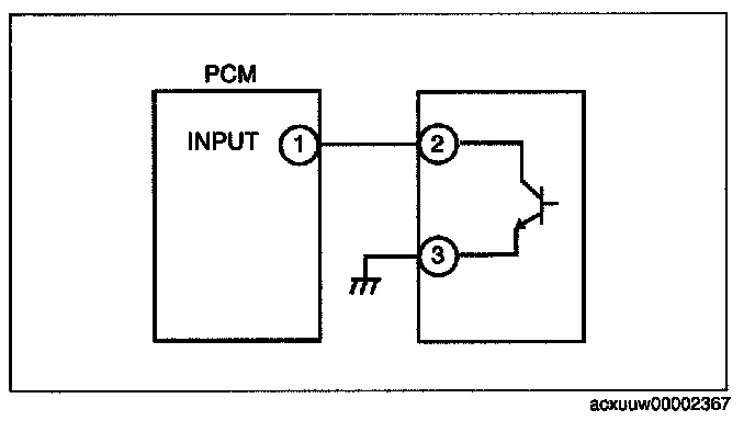 1. Measure the #1 PCM terminal voltage and confirm that it is at 0 V or 5 V when the ignition switch at ON and the engine at idle.