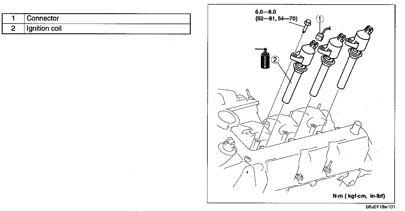 - Apply small amount of the specified dielectric grease to the inside of the ignition coils, then install the ignition coils to the spark plugs.
