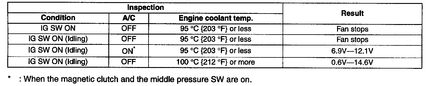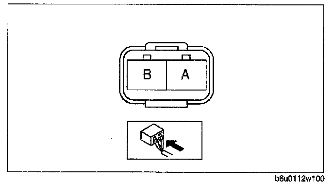 4. Measure the voltage at the terminal B of fan control module connector (2 terminals) as shown in the table.