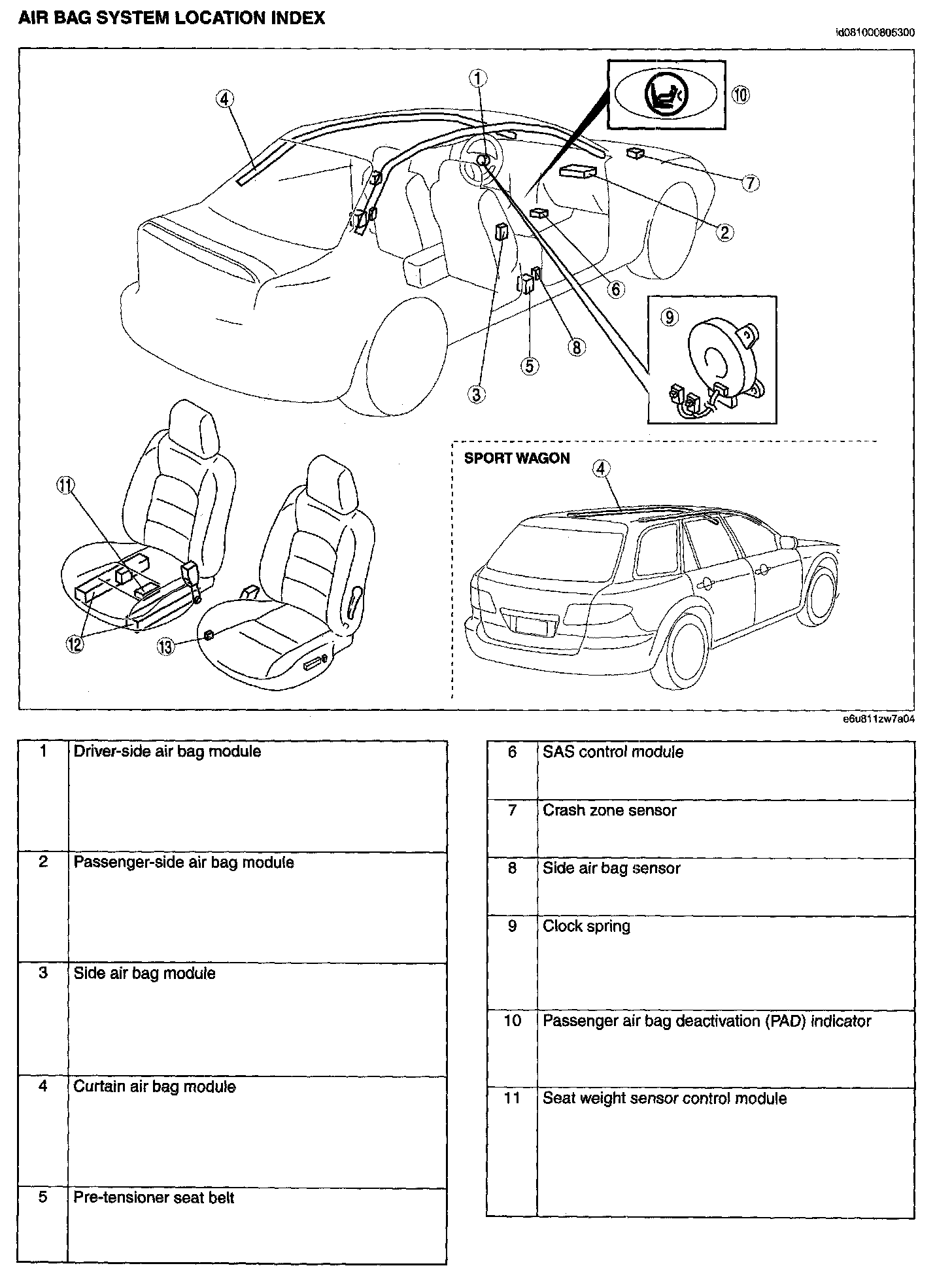 Air Bag System Location Index: