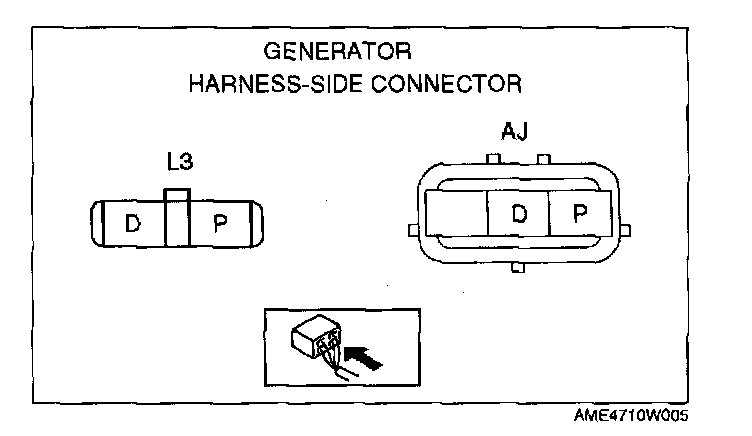 - If not as specified, inspect generator warning light, wiring harnesses between the battery and the generator warning light.