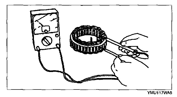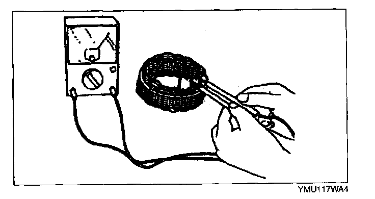 1. Inspect for continuity between the stator coil leads using an ohmmeter.