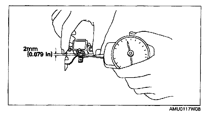 2. Read the spring pressure gauge at the brush tip projection of 2 mm {0.079 in}.