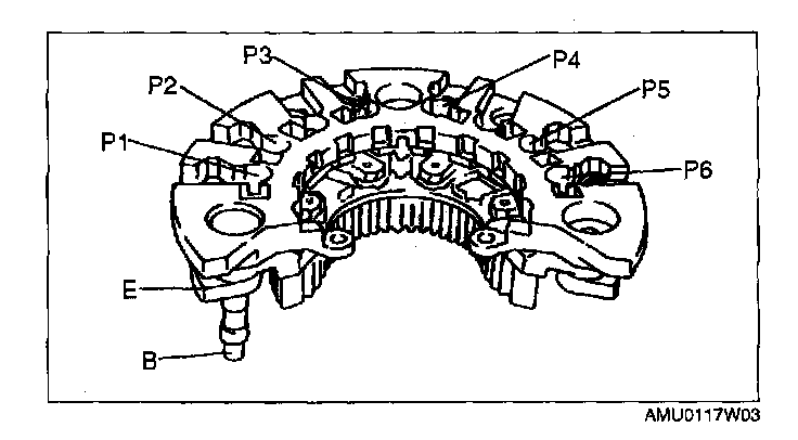 1. Inspect for continuity of the diodes using an ohmmeter.