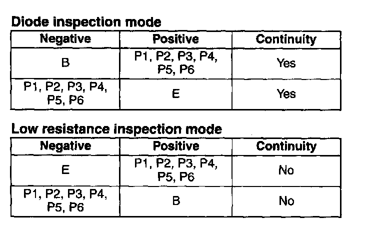 1. Inspect for continuity of the diodes using an analog circuit tester.