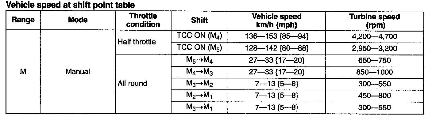Vehicle Speed At Shift Point Table:
