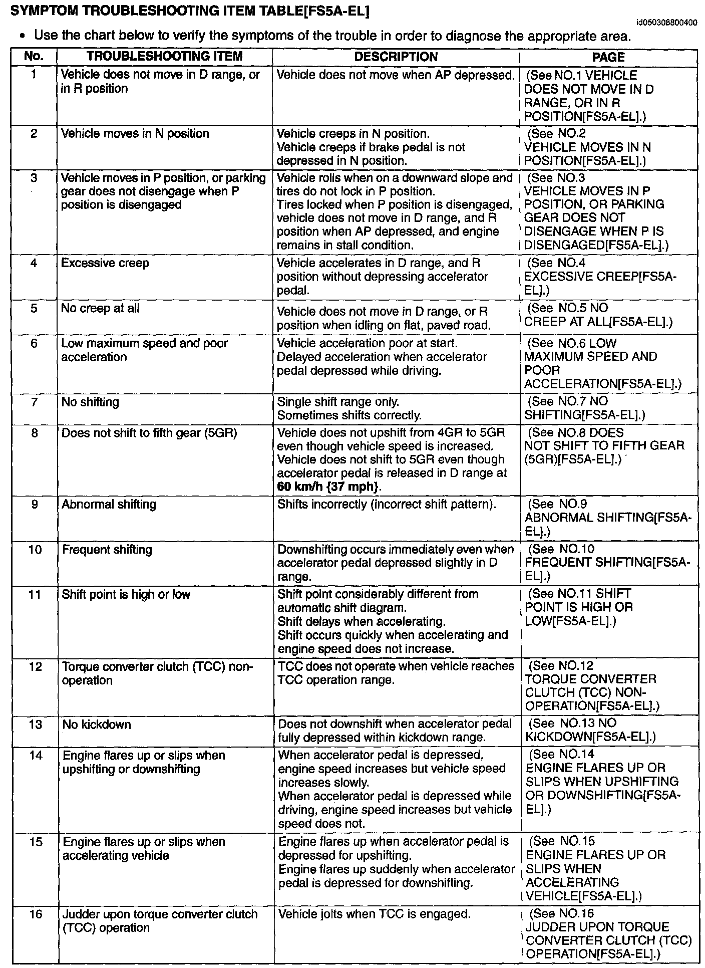 SYMPTOM TROUBLESHOOTING ITEM TABLE [FS5A-EL]