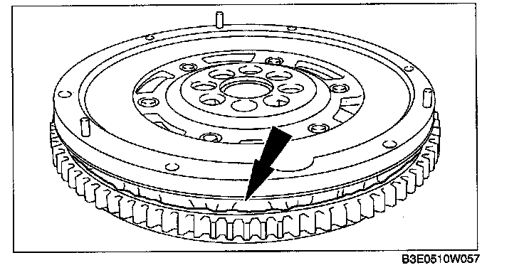 ^ Inspect the runout of the surface that contacts the clutch disc with the flywheel installed to the crankshaft.