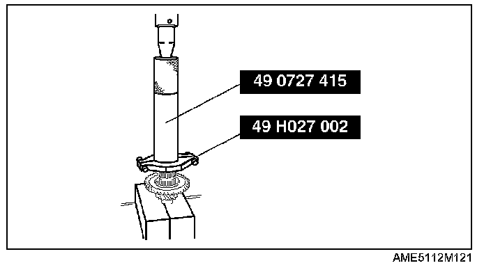 1st Bushing Assembly NoteCaution: The shaft can be damaged when installing the 1st bushing if the SST touches the secondary shaft. Install the SST to the shaft without touching the shaft.