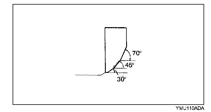 ^ If the seating position is too low, correct the valve seat using 30° cutter, and then 45° cutter.
