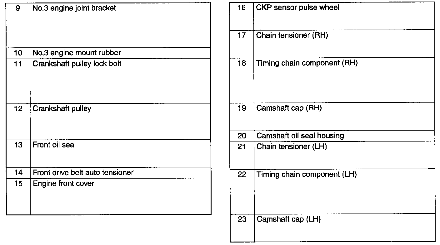 ^ Take care not to let the OCV tightening bolt slip into the timing chain cover when Installing the OCV tightening bolt from engine front.