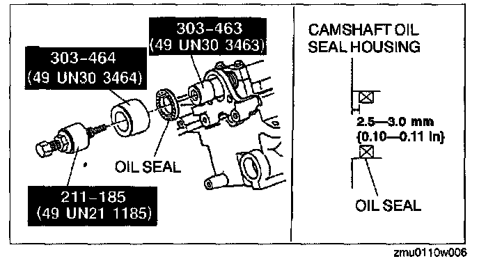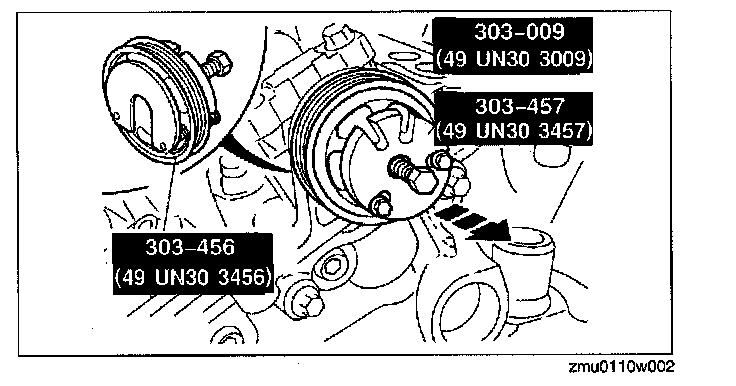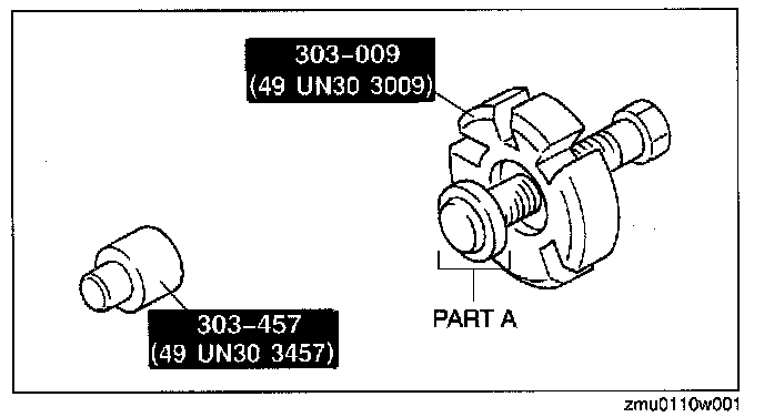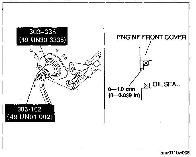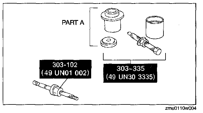 1. Assemble the front oil seal using part A of the SST [303-335 (49 UN30 3335)] and the SST [303-102 (49 UN01 002)].