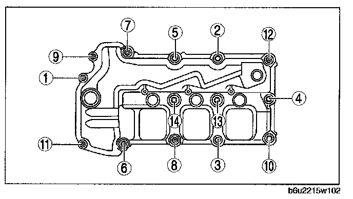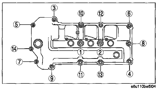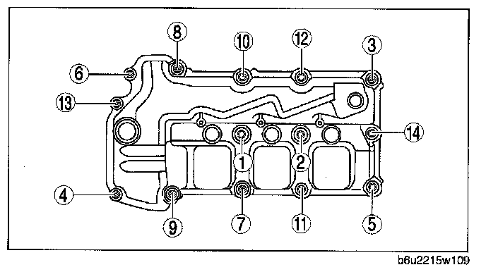 2. Install the remaining bolts and studs, and then tighten all bolts and studs in the order shown.