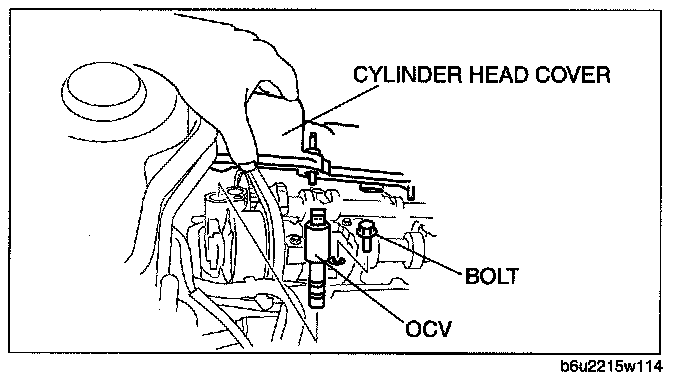 2. Remove the oil control valve (OCV) with cylinder head cover raised as shown in the figure.