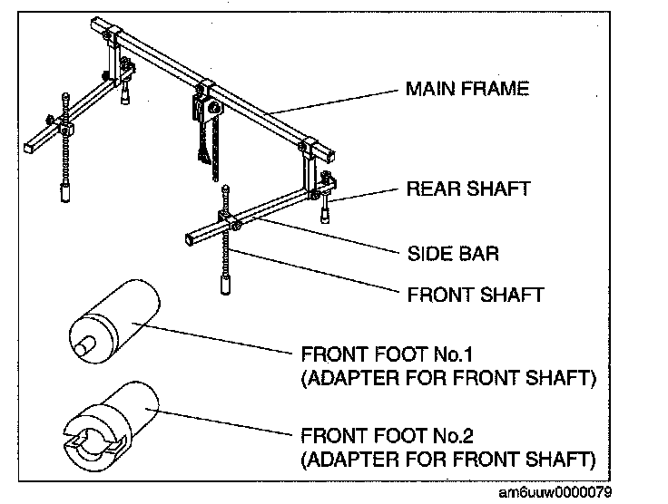 (3) Install the left/right front shaft of the SST with front foot No.2 to the bolt as shown in the figure.