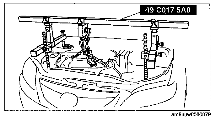 1. Lift up the vehicle and tighten the engine hanger installation bolts from under the vehicle.