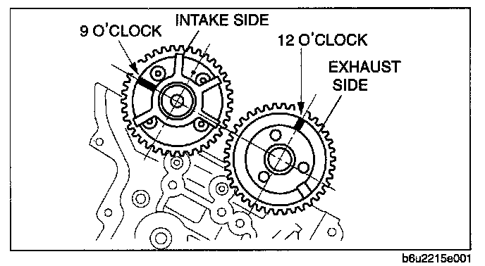 3. Position the mark on the exhaust camshaft to 12 o'clock position.