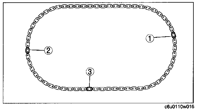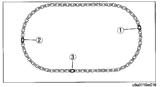 2. Place alignment marks on the timing chain corresponding to each of the alignment marks on the timing sprocket.