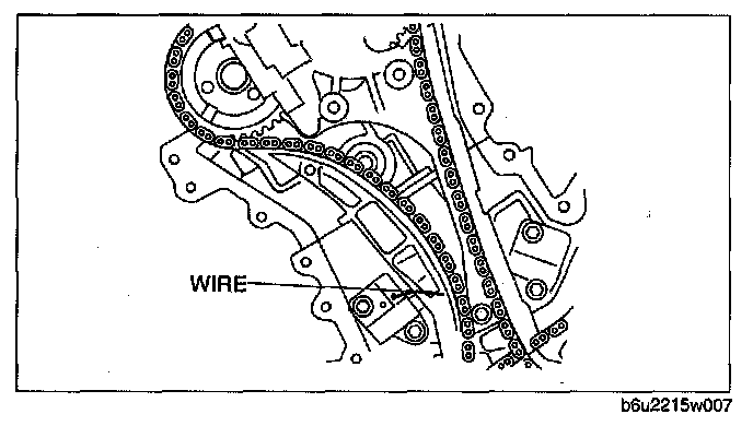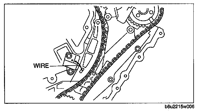 5. Install the chain tensioner (LH) and remove the retaining wire.