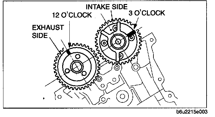 3. Position the mark on the intake camshaft to 3 o'clock position.