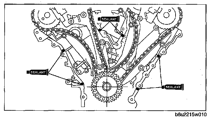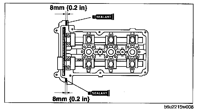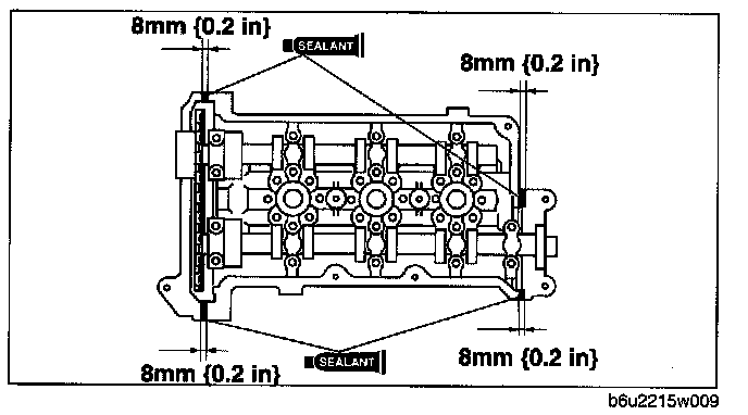 1. Apply a 6 mm (0.24 in) dot of silicone sealant at the indicated location.