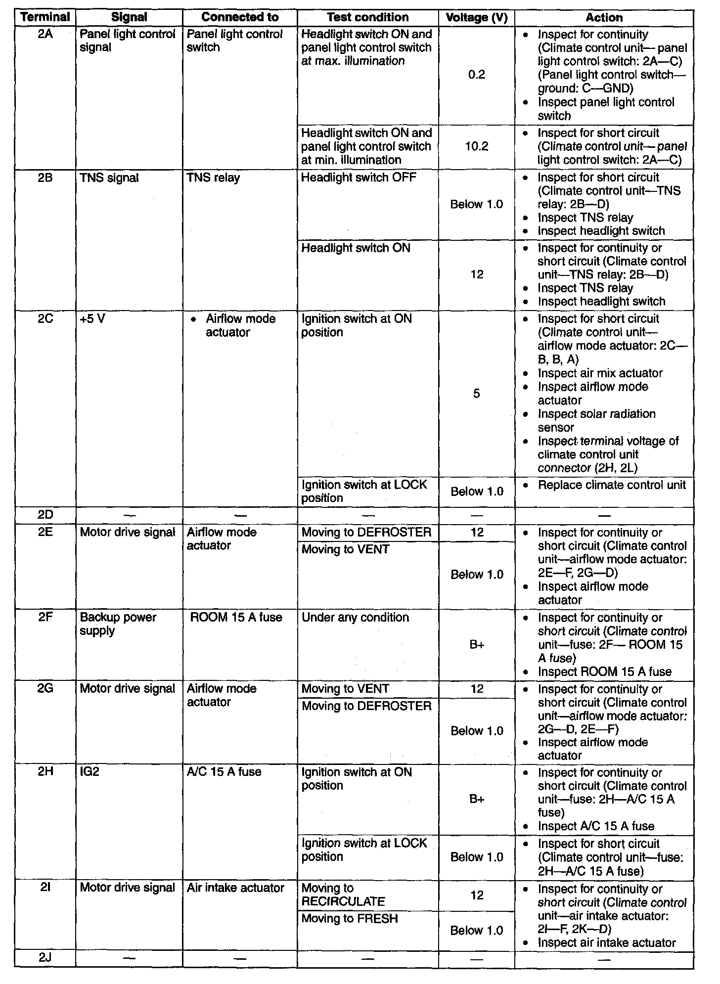 Pinout Values and Diagnostic Parameters