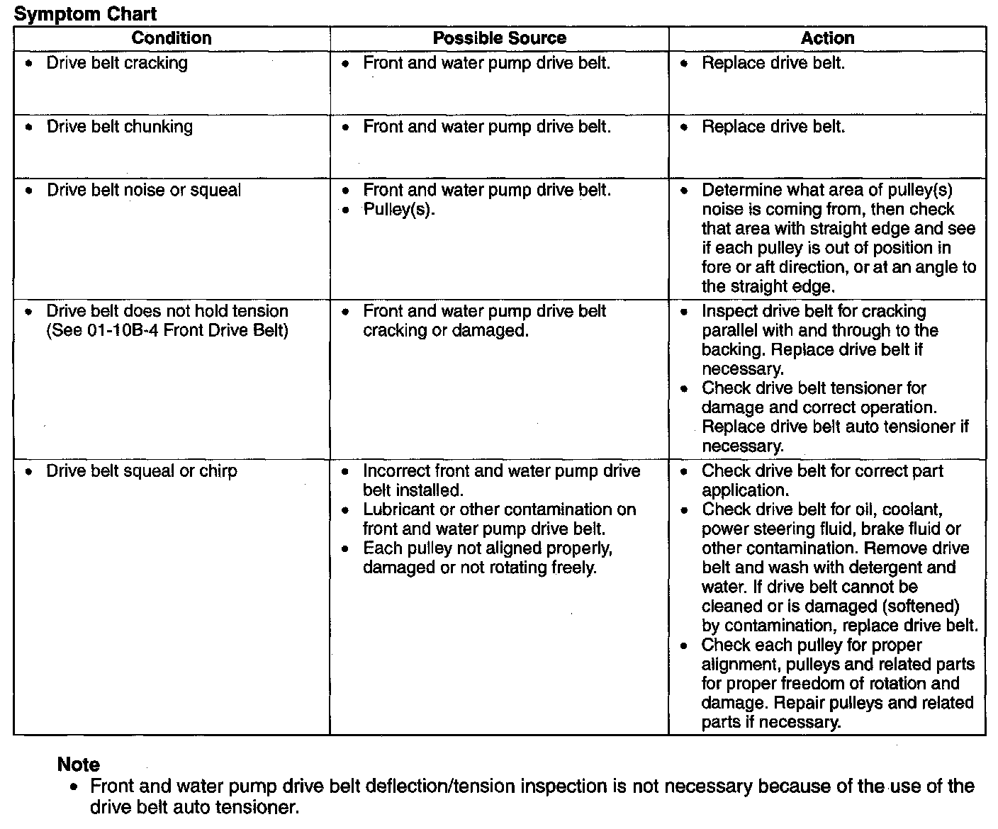 ^ Front and water pump drive belt deflection/tension inspection is not necessary because of the use of the drive belt auto tensioner.