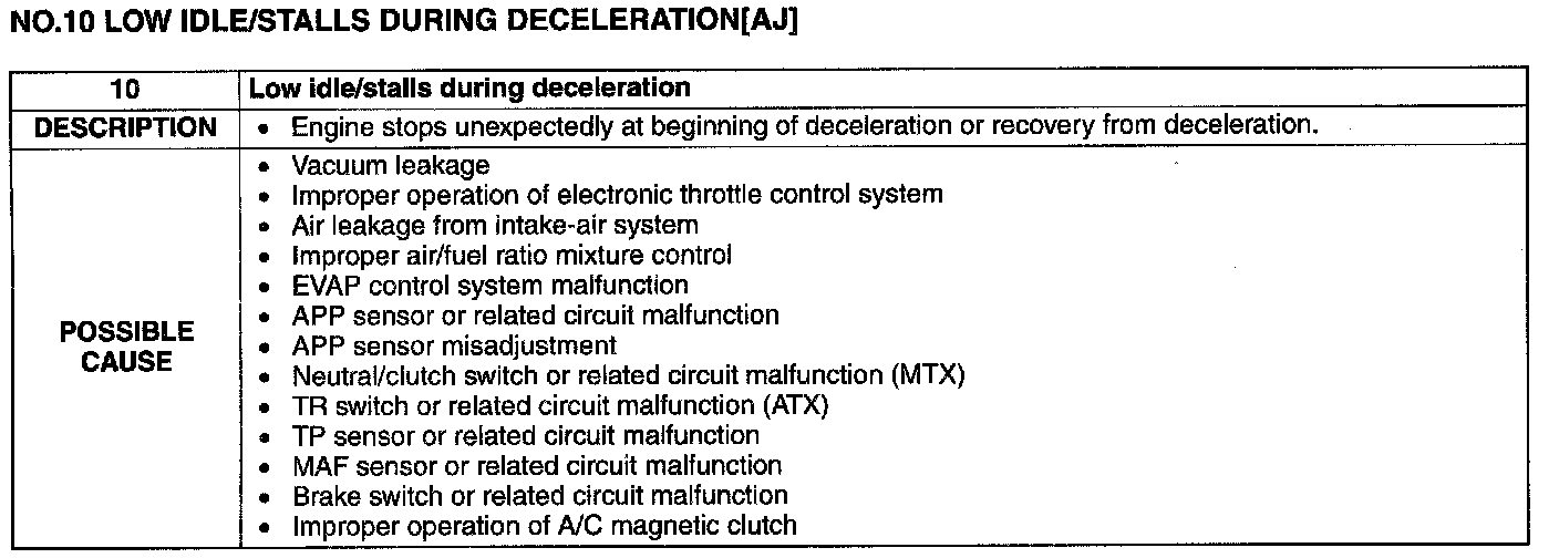 No.10 Low Idle/Stalls During Deceleration