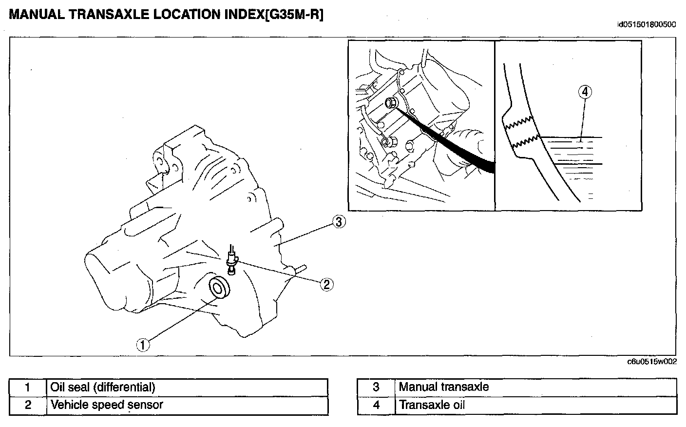MANUAL TRANSAXLE LOCATION INDEX [G35M-R]