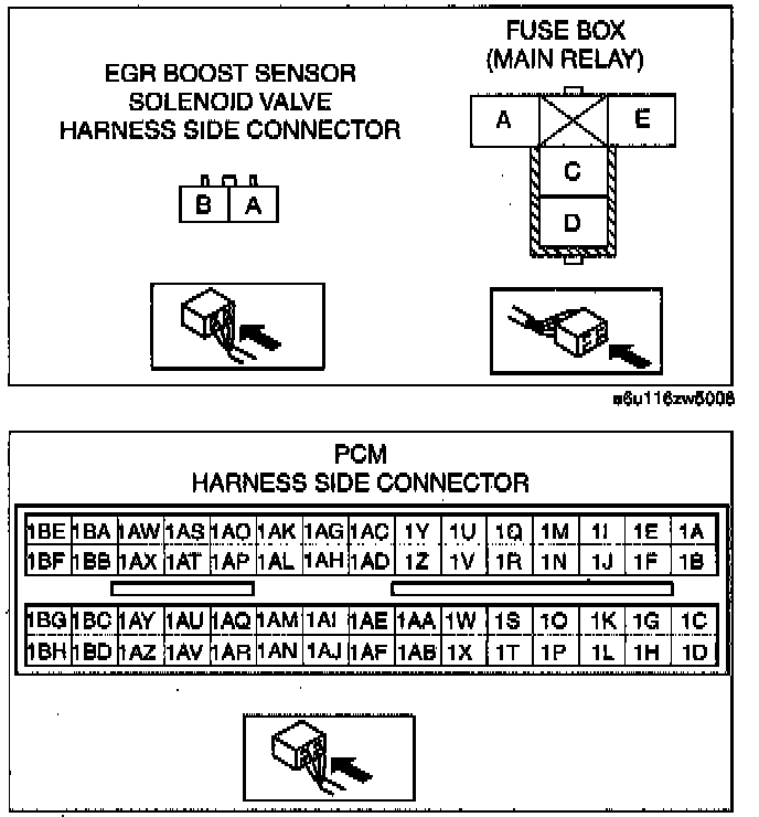 - EGR boost sensor solenoid valve terminal A Main relay terminal C