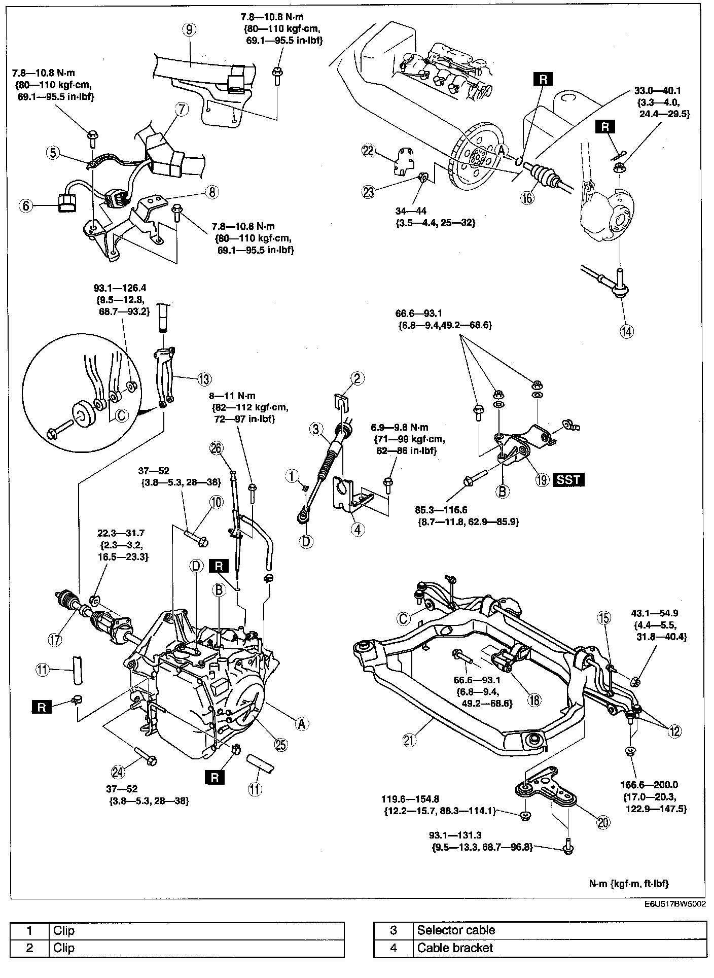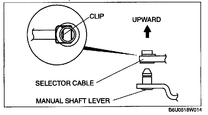 Note: Install the selector lever to the manual shaft lever with the clip side of the selector cable end facing up.